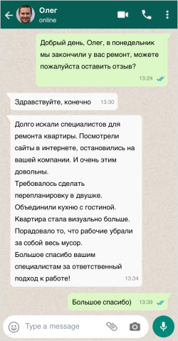 Заказчик сможет оплатить ремонт наличным или безналичным расчётом. Вносить оплату следует поэтапно. Количество этапов указано в документе. Сделать ремонт зала, кухни, спальни, ванной комнаты и туалета по приемлемой стоимости легко, достаточно обратиться в нашу компанию.